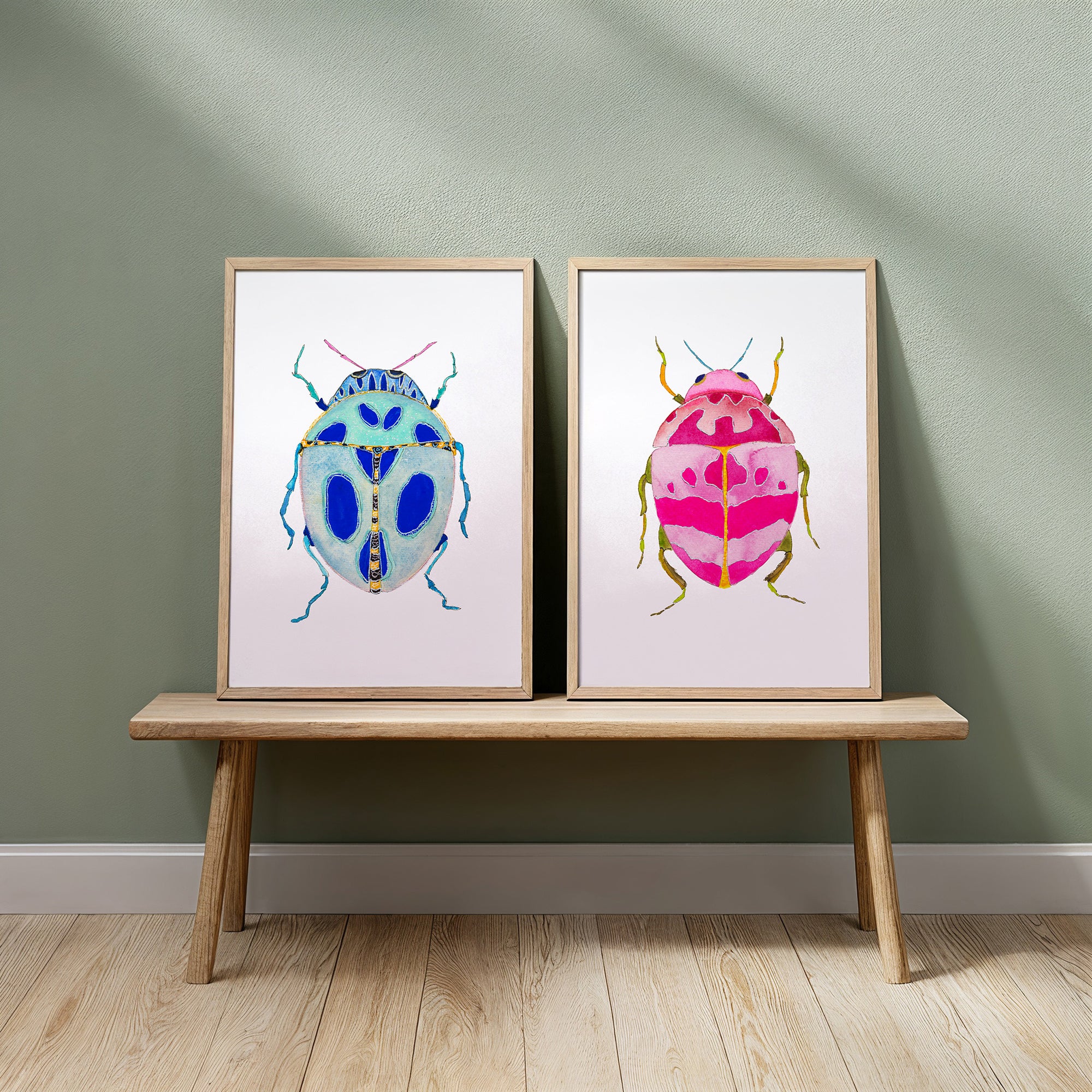 Pink & Blue Beetles - Set of 2 Art Prints