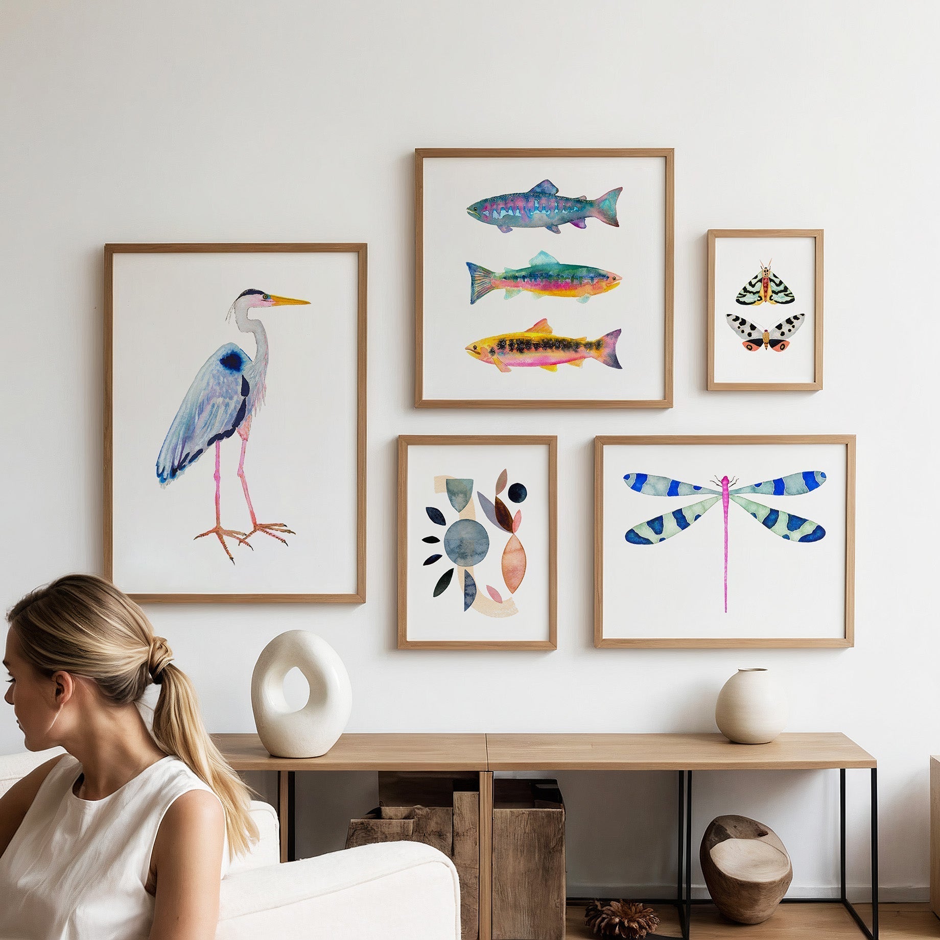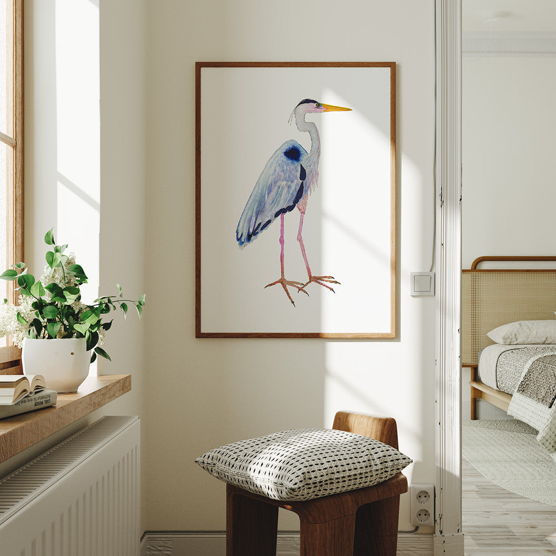 This is an archival fine art print of my original watercolor Great Blue Heron painting. Click here for the Lakehouse Set of 5 Prints in the 4th photo.