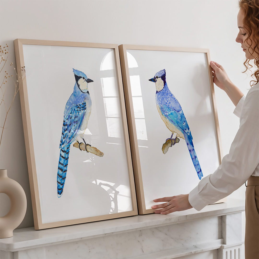 This is an archival fine art print of my original watercolor Blue Jay No. 1 painting. Click here for the Blue Jays Set of 2 Prints in the 3rd photo.