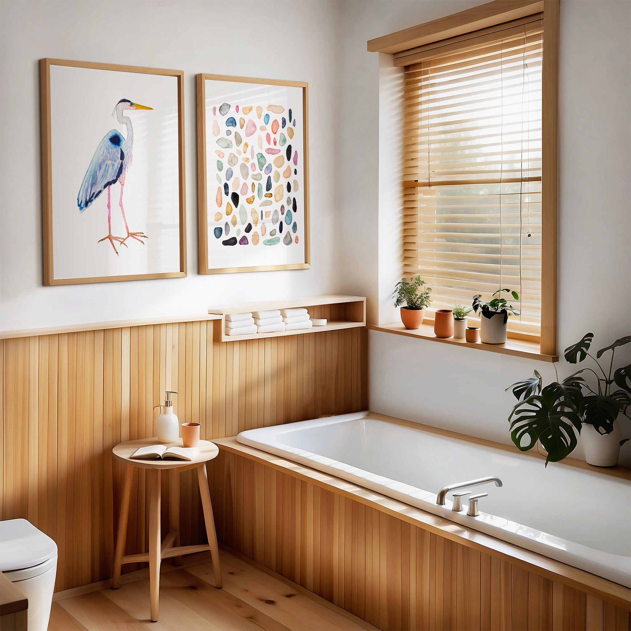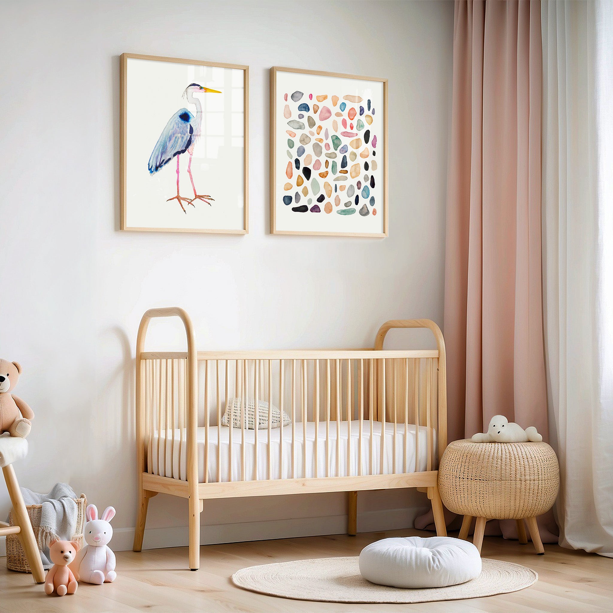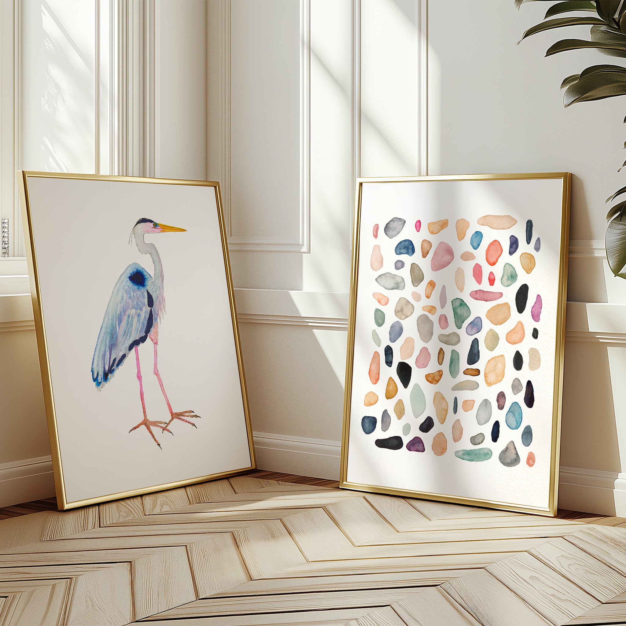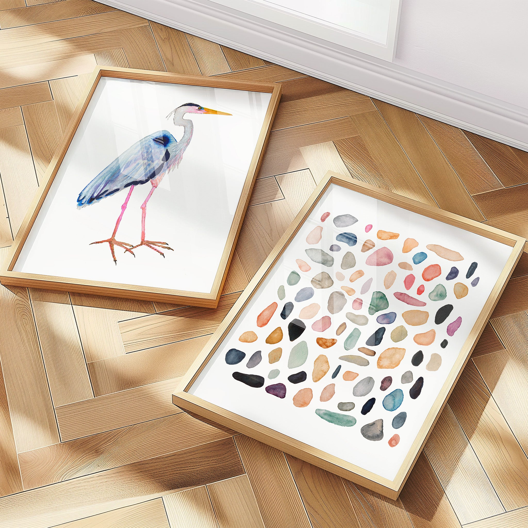 This is an archival fine art print set of my original watercolor paintings of a Great Blue Heron and Rock Collection No. 4.