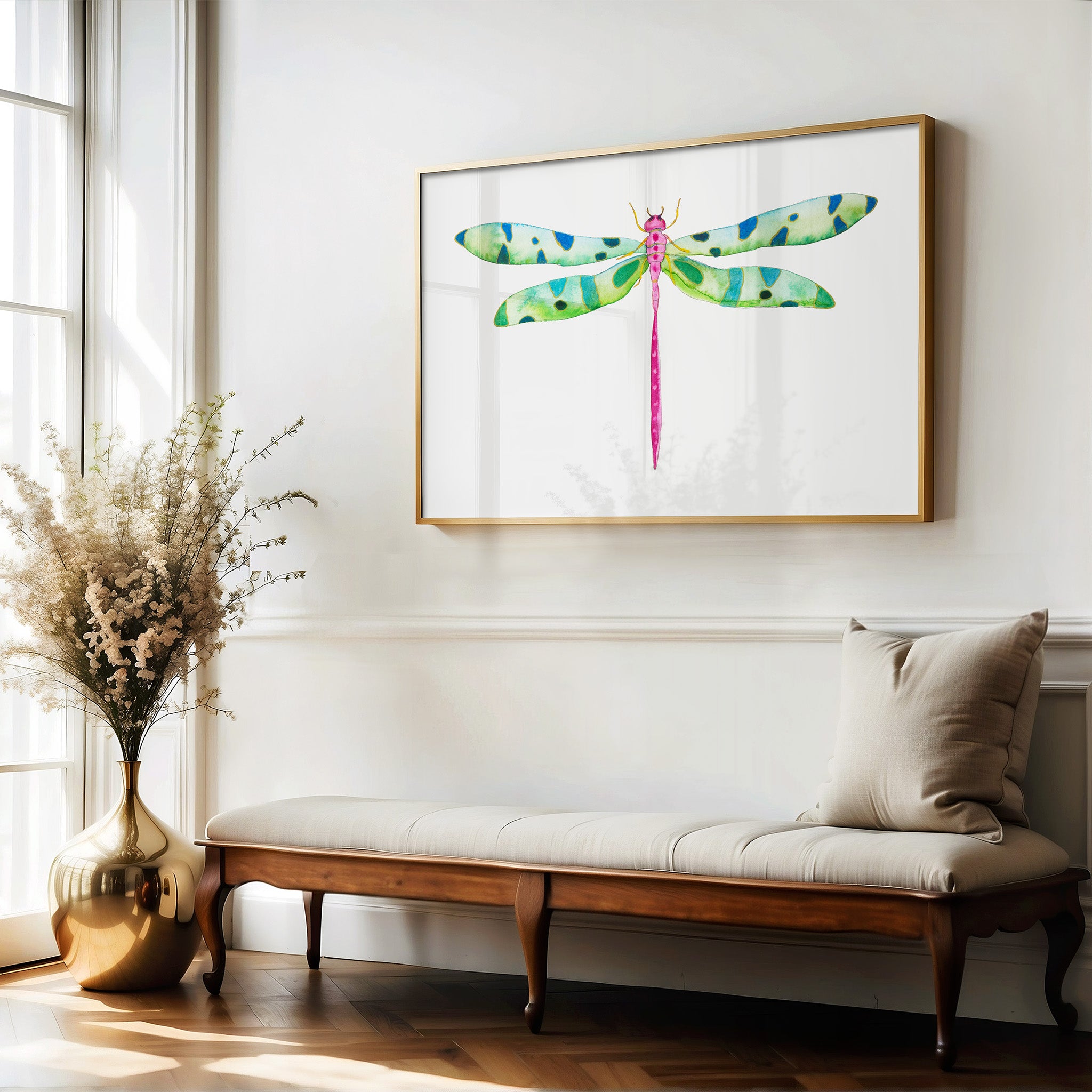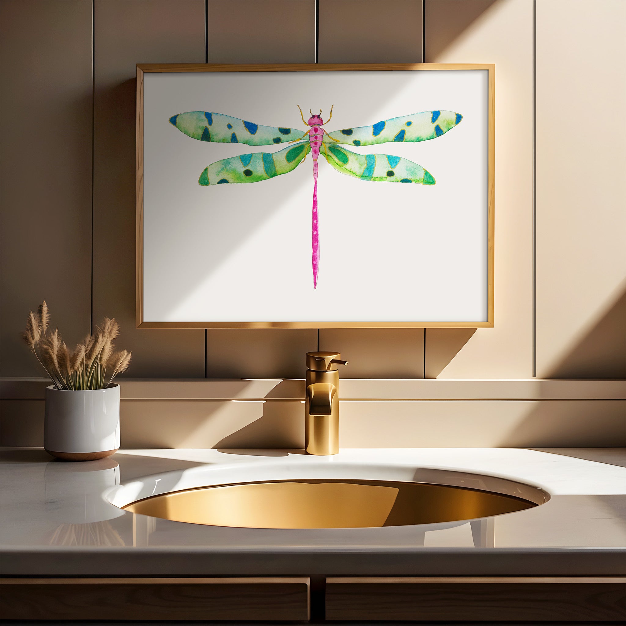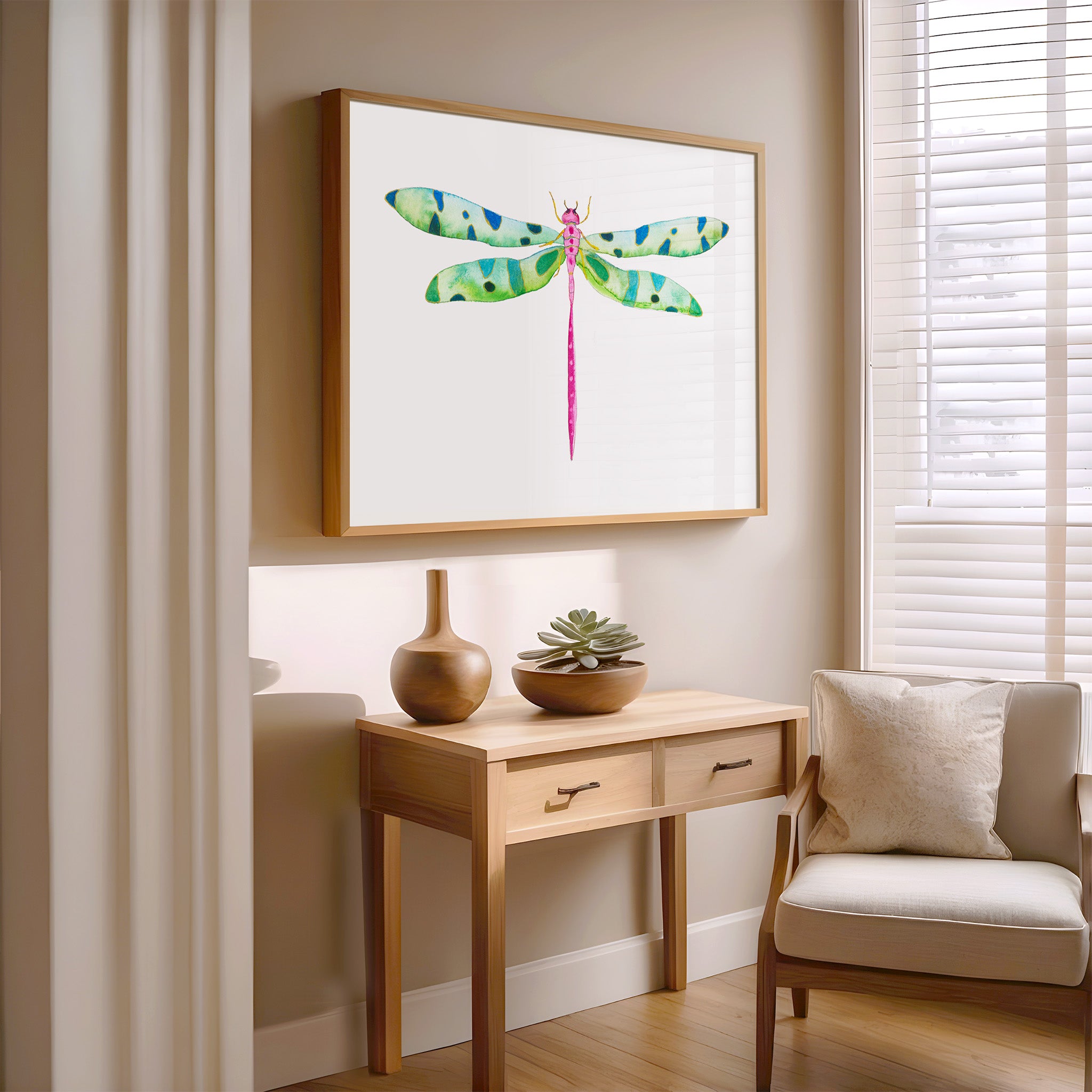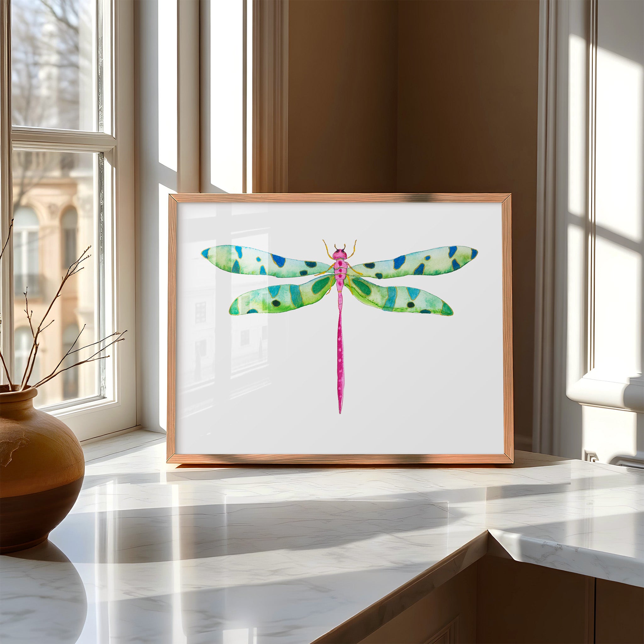 This is an archival fine art print of one of my original watercolor dragonfly painting. For the set of 4 in the fourth photo, click here: https://snoogsandwilde.com/products/dragonflies-set-of-4-art-printsWe offer in-house framing using real oak wood (natural, walnut, or white) or gold metal and all frames come with crystal-clear tempered glass. Framed prints arrive at your door fully framed and ready to hang with all necessary hardware.For unframed prints, all size options are standard and come ready to be placed into any standard frame.Each print is made with archival pigment-based ink on 100% cotton paper.Unframed prints are thoughtfully packaged with firm backing board in a clear protective sleeve. Larger prints are shipped in a sturdy mailing tube.Framed prints are carefully double-boxed with bubble wrap to amply protect the frame and glass while on the shipping journey.
