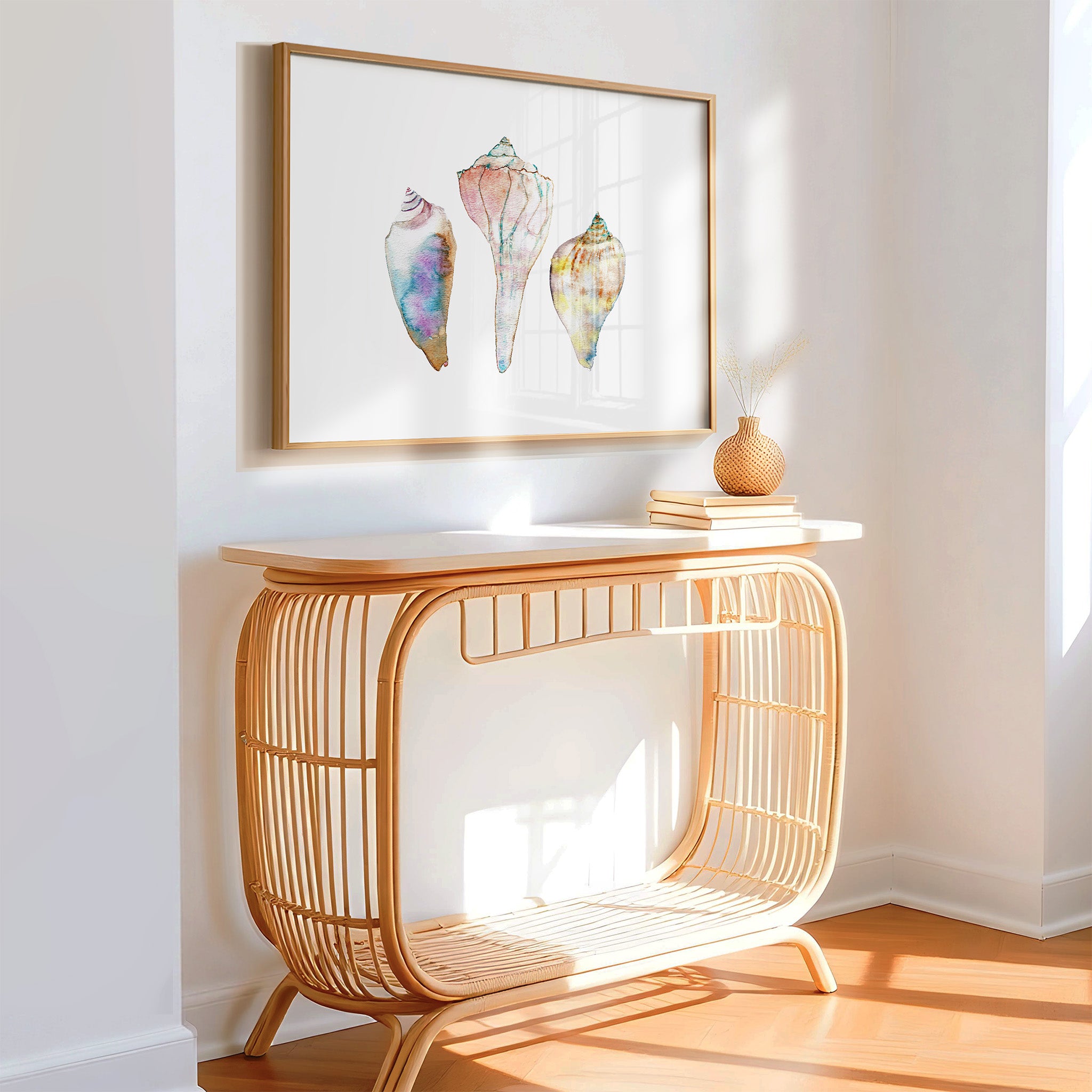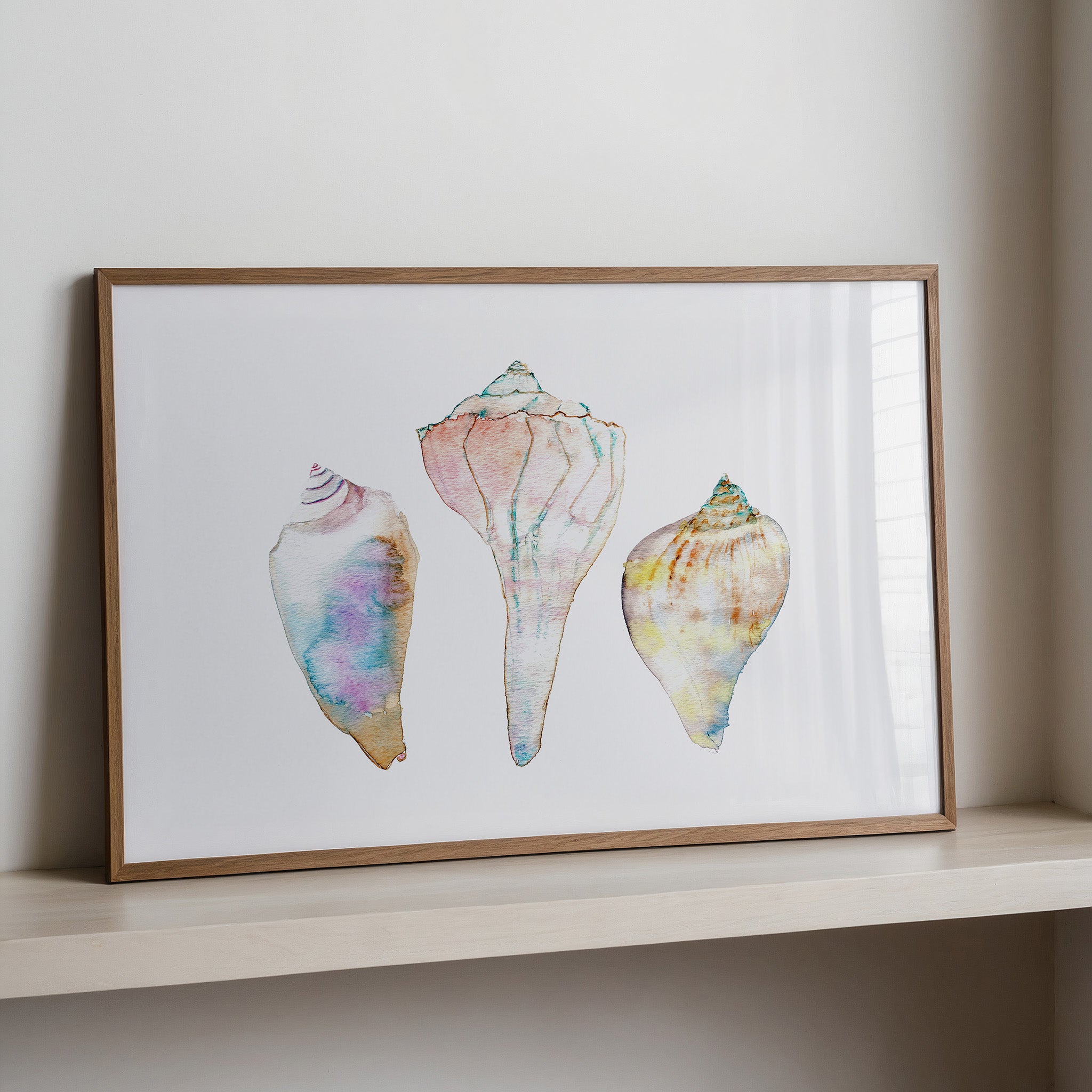 This is an archival fine art print of my original watercolor Conch Shells painting.
