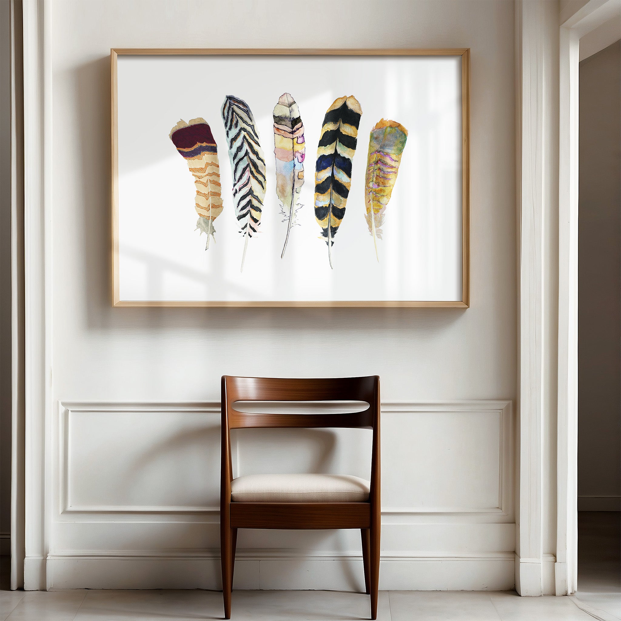 This is an archival fine art print of my original watercolor 5 Feathers No. 3 painting.