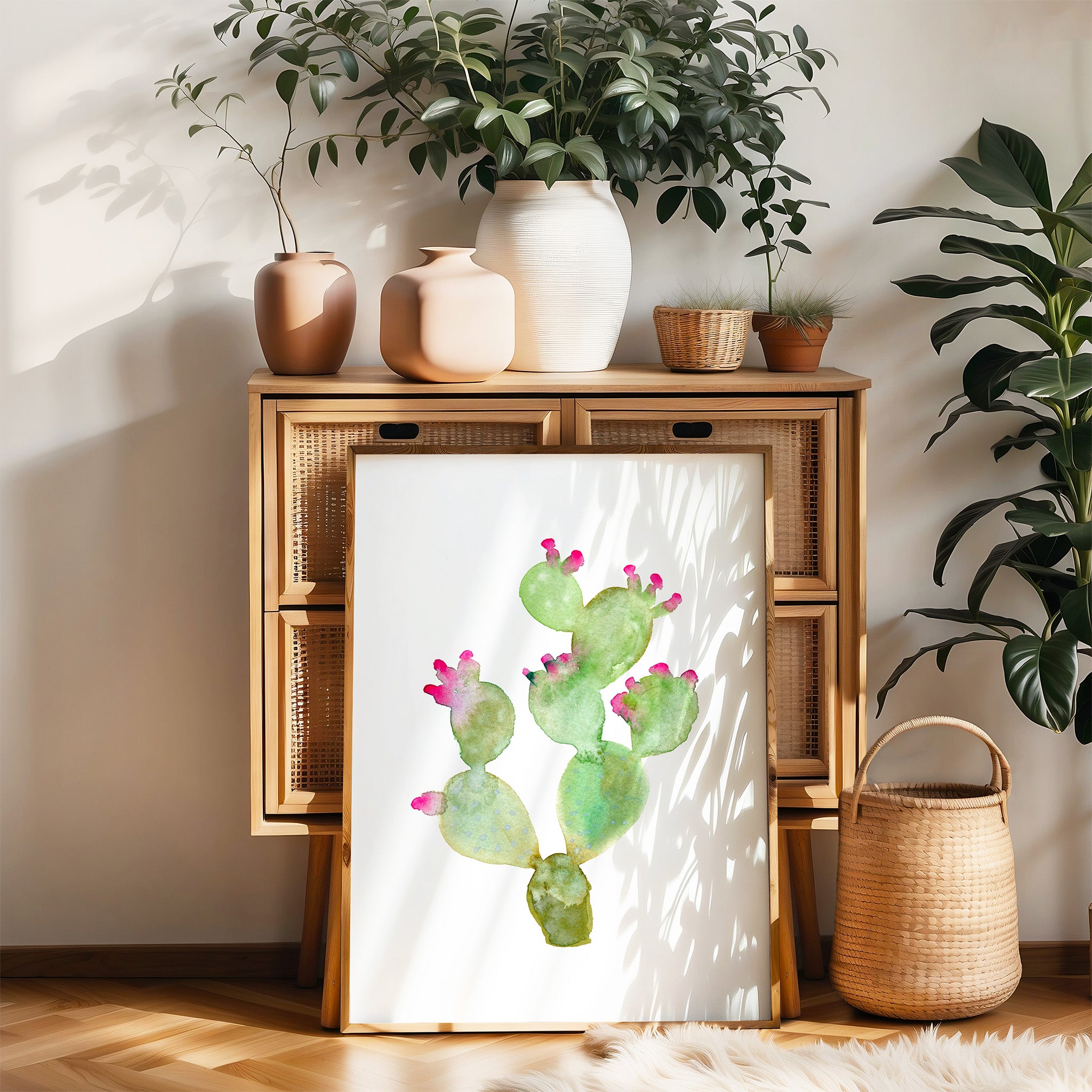 This is an archival fine art print of my original watercolor Prickly Pear Cactus painting.