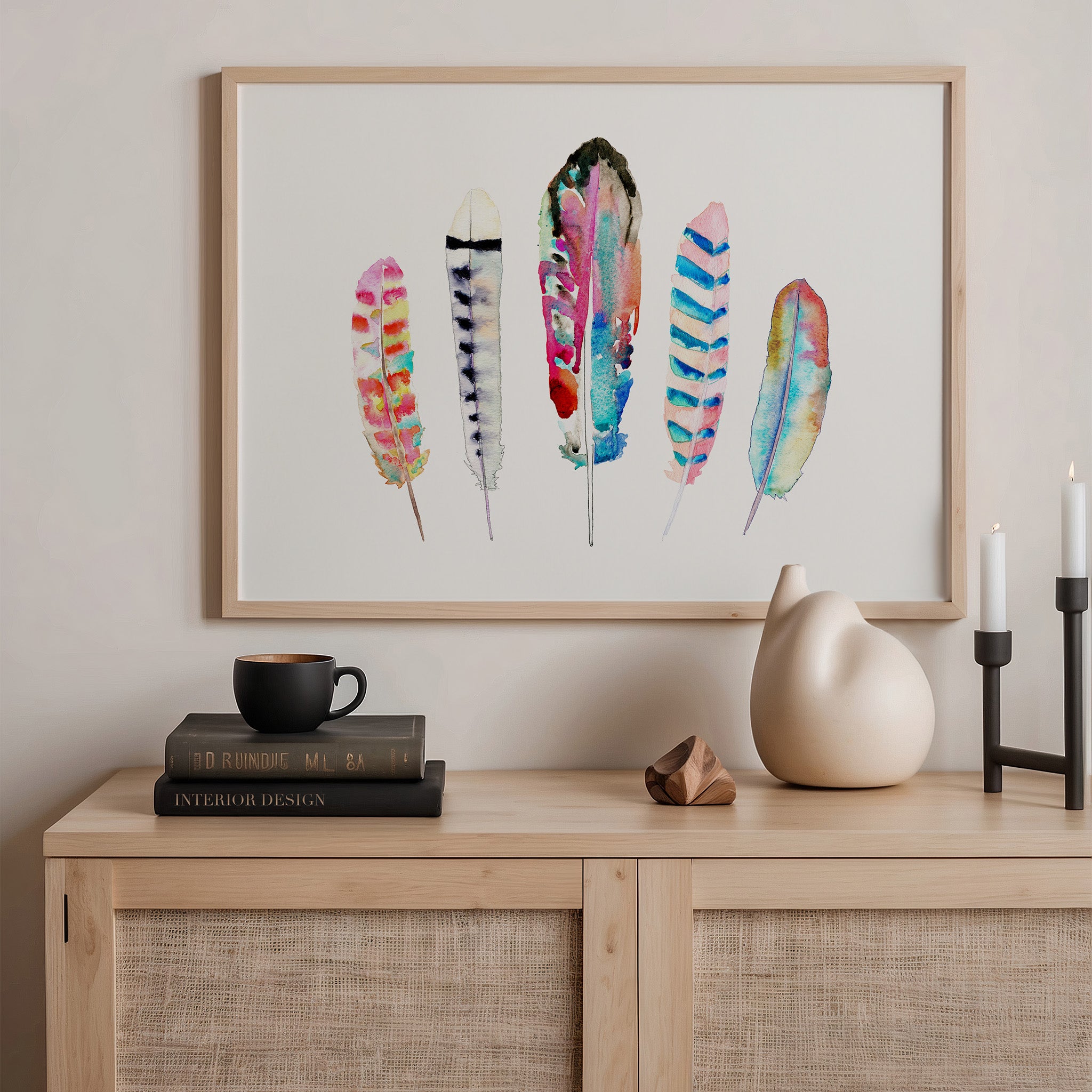 This is an archival fine art print of my original watercolor 5 Feathers No. 7 painting.