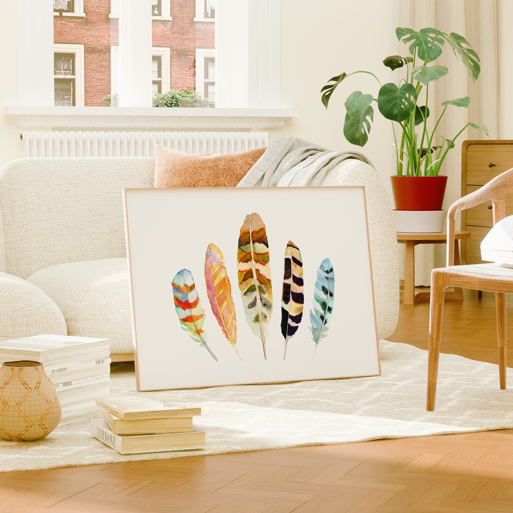 This is an archival fine art print of my original watercolor 5 Feathers No. 5 painting.