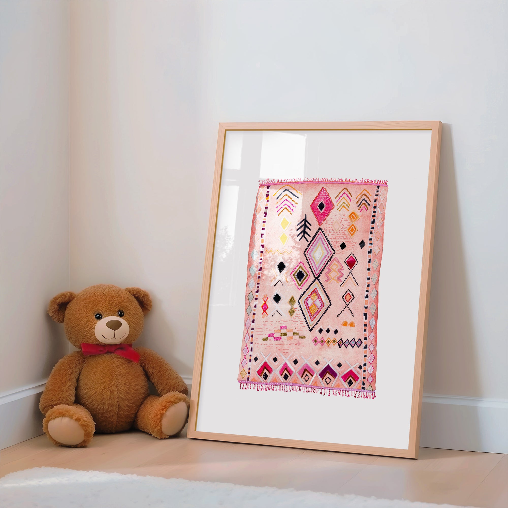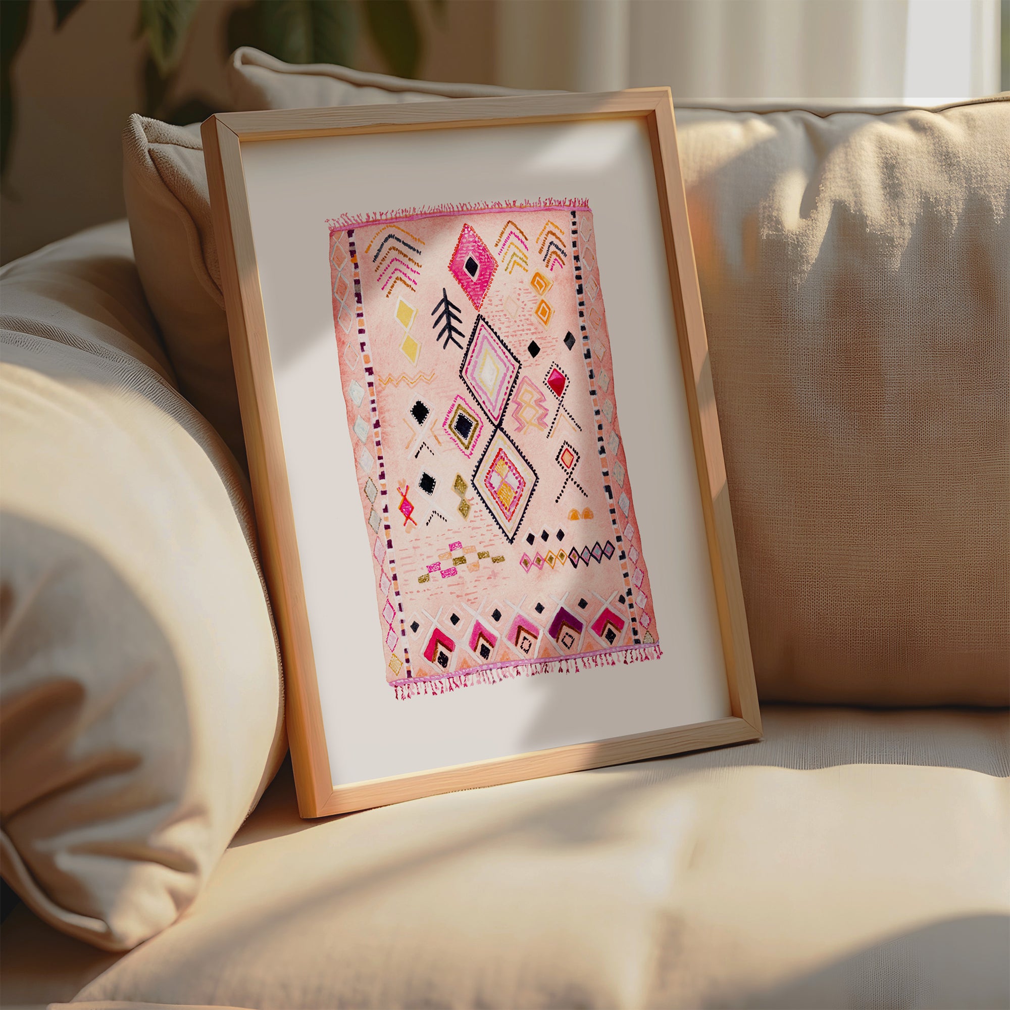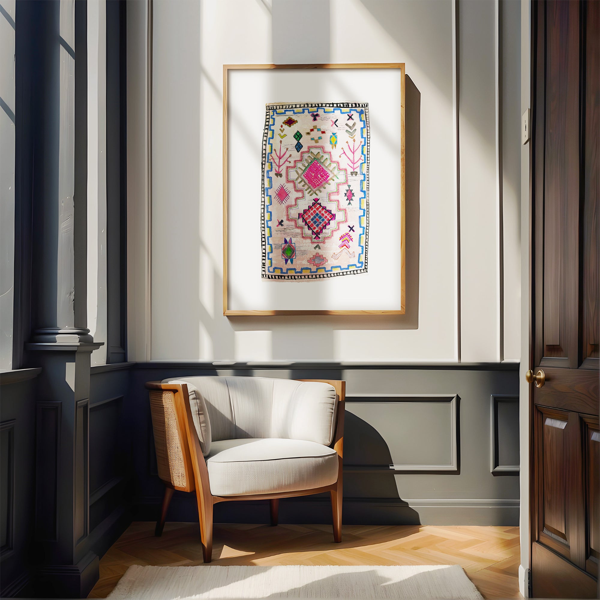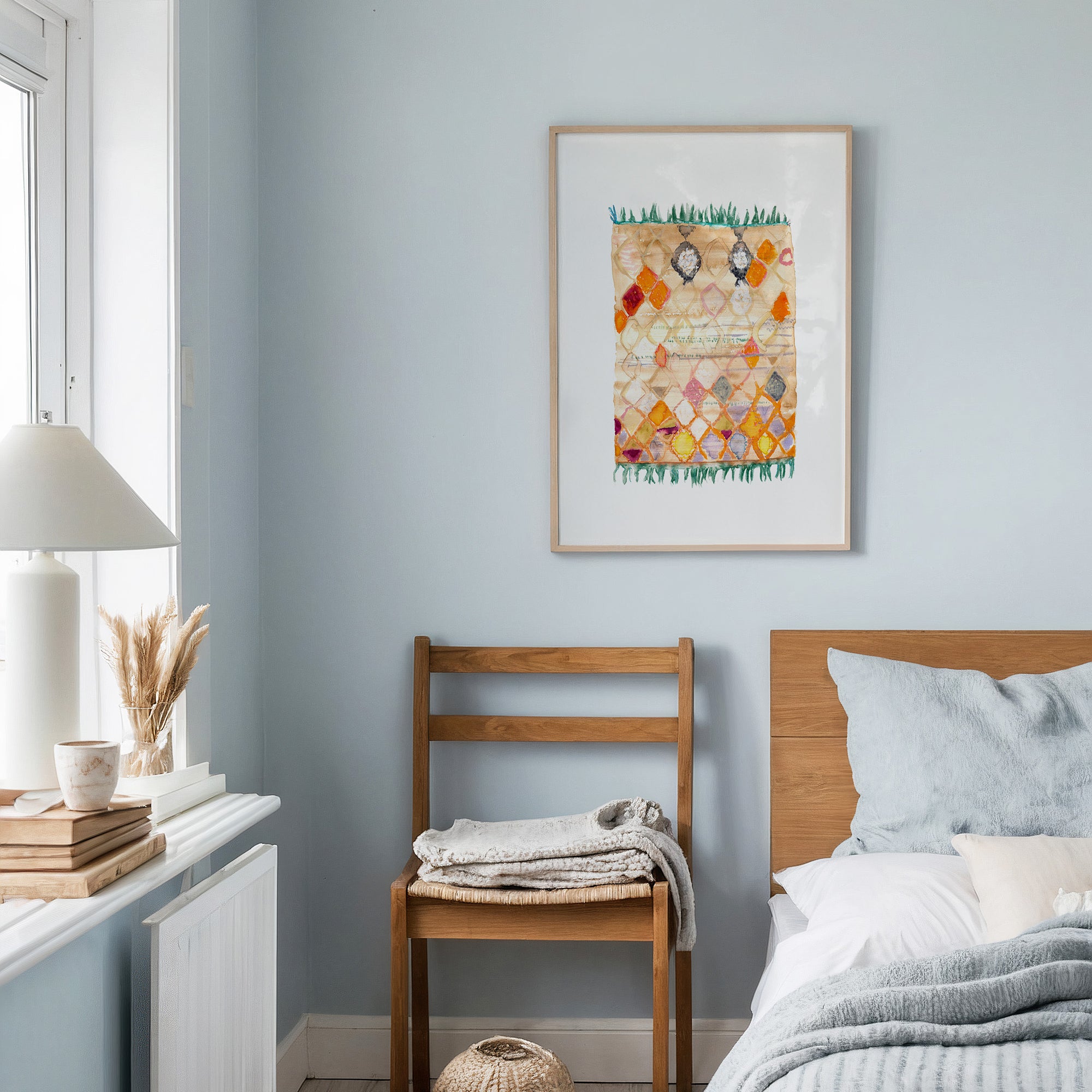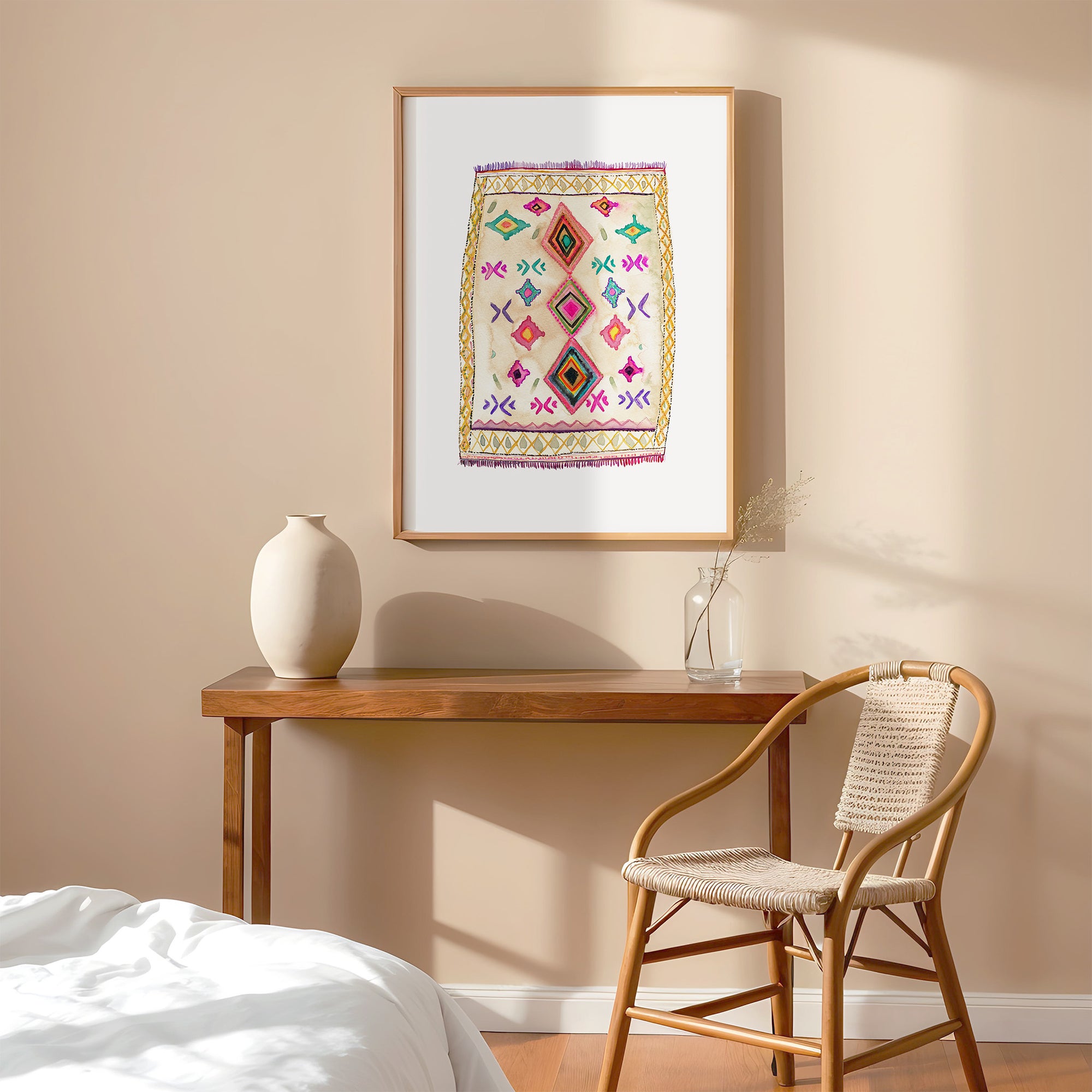 This series was inspired by the breathtaking handwork of rug makers from around the globe. I am in awe of these artists and their magical creations where beauty and functionality meet. I hope that my painterly rendition of this rug will bring a sense of joy to your space!