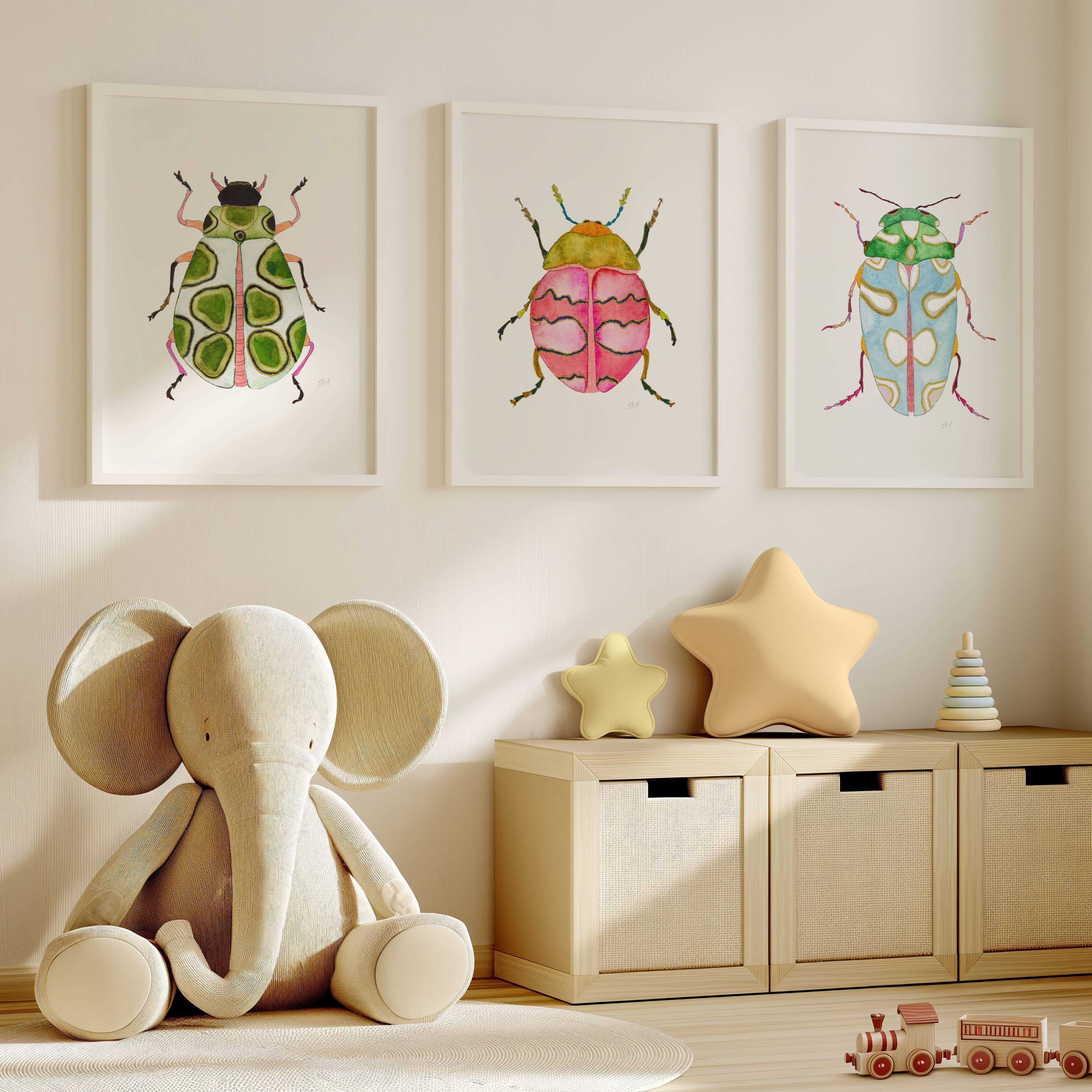 This is an archival fine art print of my original watercolor Beetle No. 16, Beetle No. 23, and Beetle No. 24 paintings.