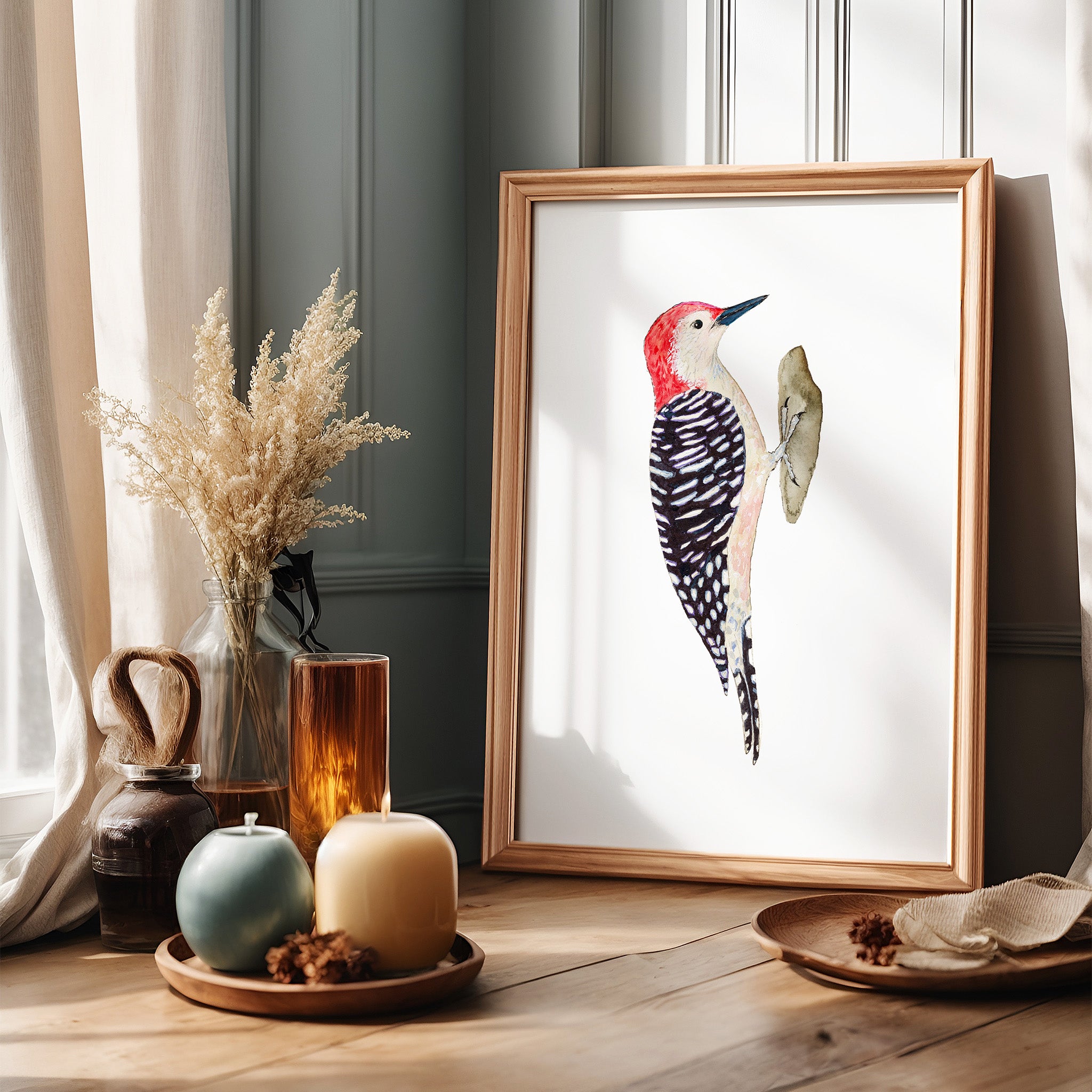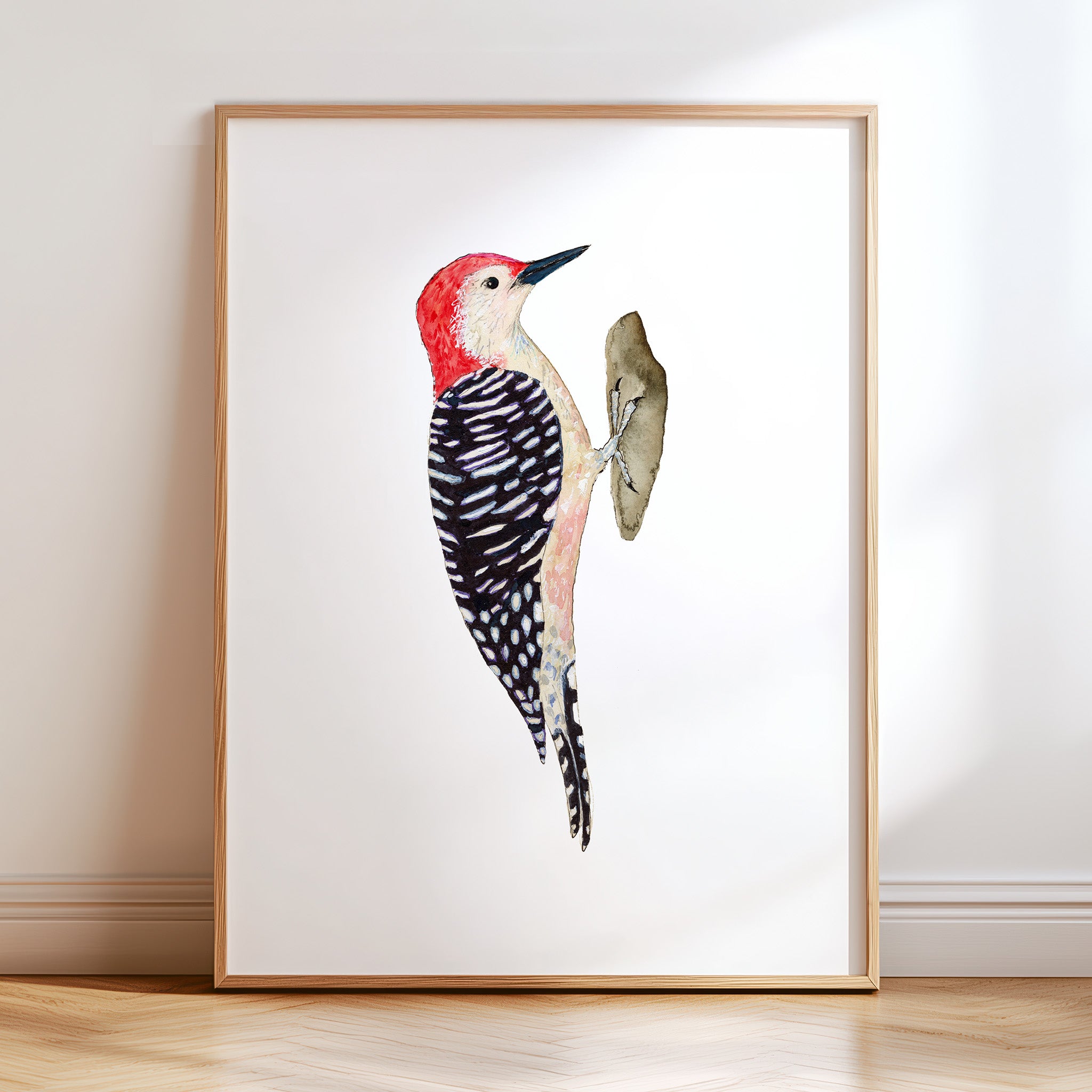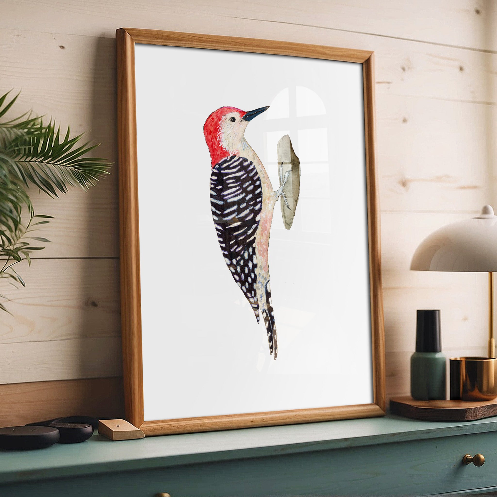 This is an archival fine art print of my original watercolor Red-Bellied Woodpecker painting.